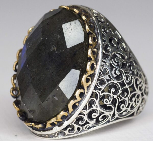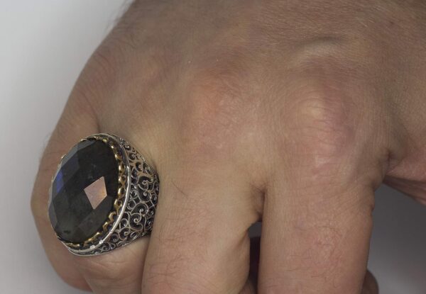 Erkekler için 925 Ayar Gümüş Yüzük, Doğal Labradorit Taşı