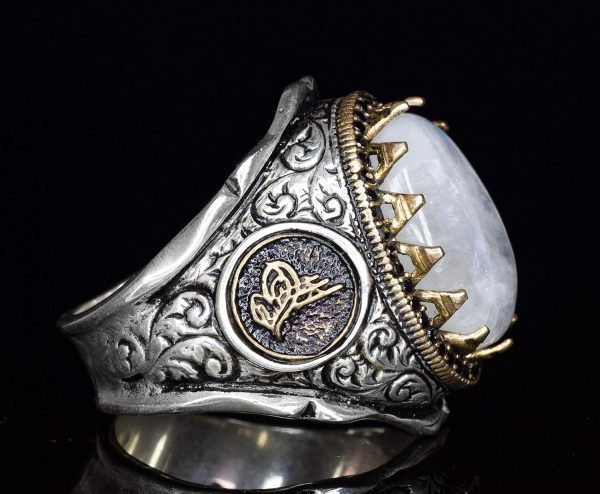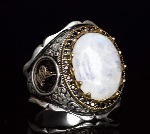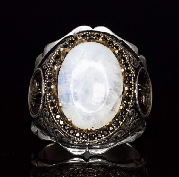 Bu muhteşem yüzük, yüksek kaliteli 925 ayar gümüşten yapılmıştır ve gerçek doğal Aytaşı taşını içermektedir. Aytaşı, yumuşak ve büyüleyici parıltısıyla sezgiyi, duygusal dengeyi ve içsel büyümeyi artırma yeteneği ile bilinir. Yengeç burcu ile ilişkilendirilen Aytaşı, koruma ve duygusal güç sembolü olarak güçlü bir anlam taşır ve bu nedenle Yengeç burcunda doğanlar için mükemmel bir seçimdir. Bu yüzüğün cesur tasarımı ve eterik varlığı, herhangi bir koleksiyonda öne çıkan bir parça olmasını sağlar.