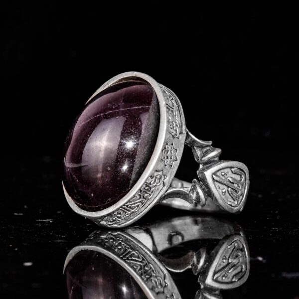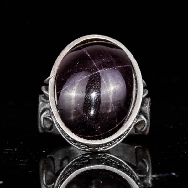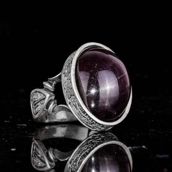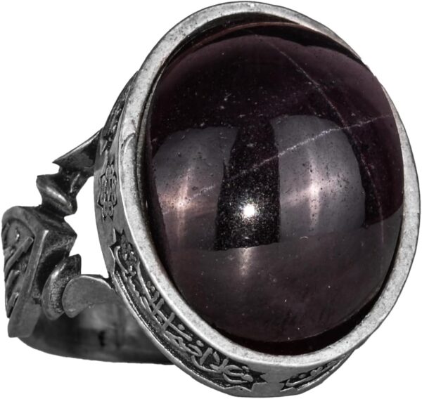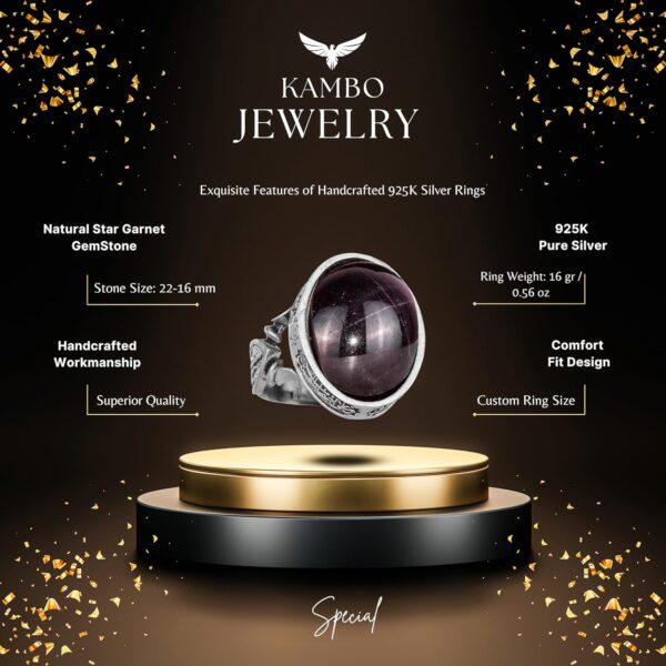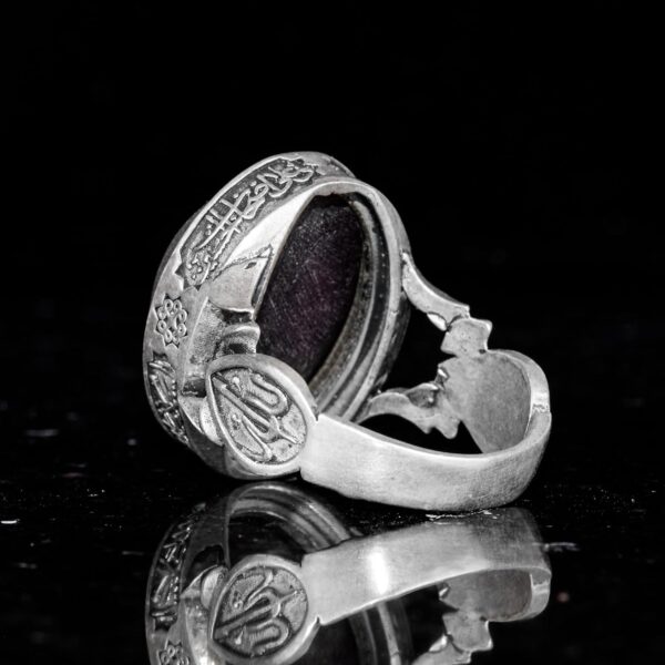 Erkekler için 925 Ayar Gümüş Yüzük – Doğal Yıldız Granat Taşı ile İslami Tasarım ve Tanrı Motifi