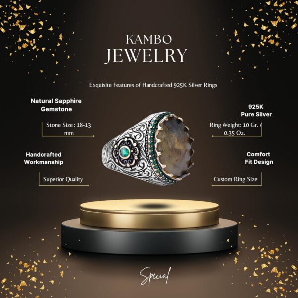 Erkekler için 925 Ayar Gümüş Yüzük – Gerçek Doğal 7 Karat Safir Taşı