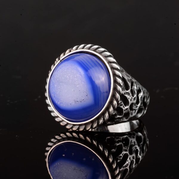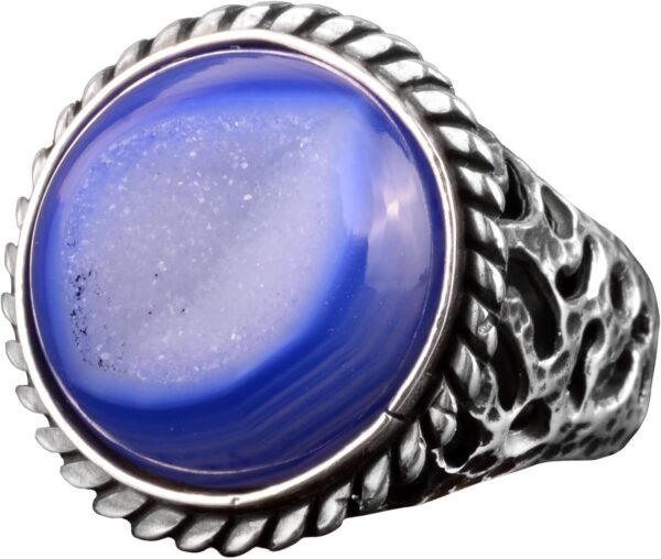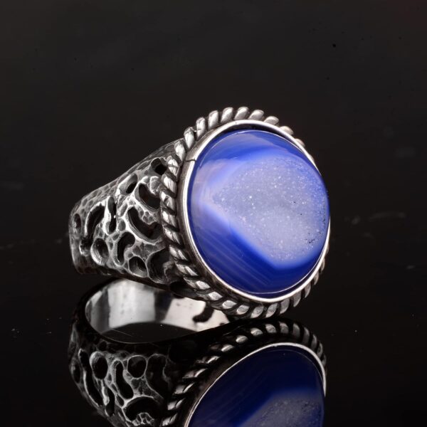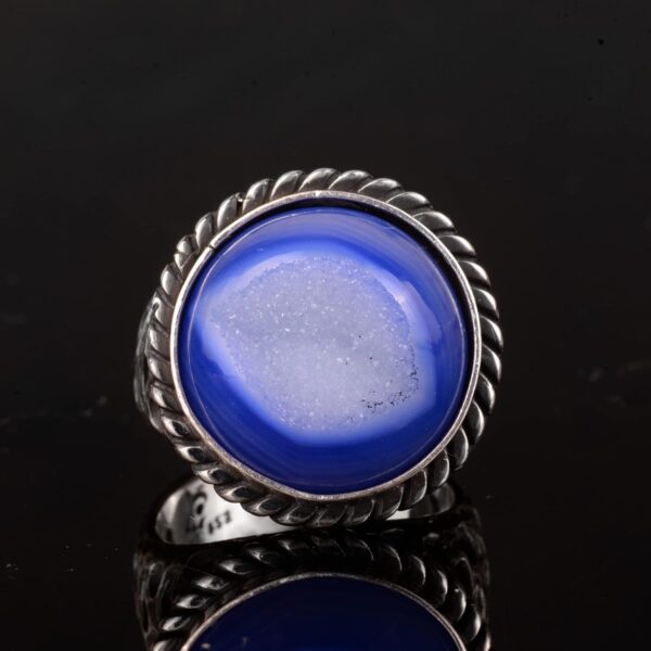 Erkekler için 925 Ayar Gümüş Yüzük ile Doğal Druzy Kuvars Taş