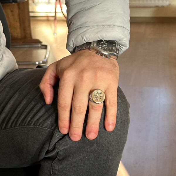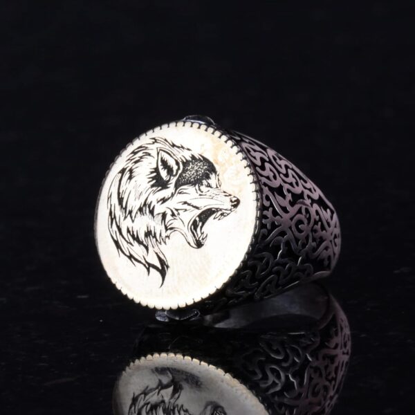 925 Ayar Gümüş Erkek Yüzük, Eşsiz El Yapımı Gümüş Yüzük, Kurt Yaban Hayatı Ağırlık: 12.54gr