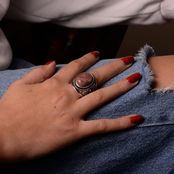 Erkekler için 925 Ayar Gümüş Yüzükler – Doğal Taş Seçimi (Rhodonite)