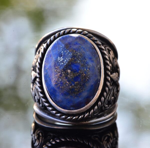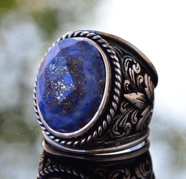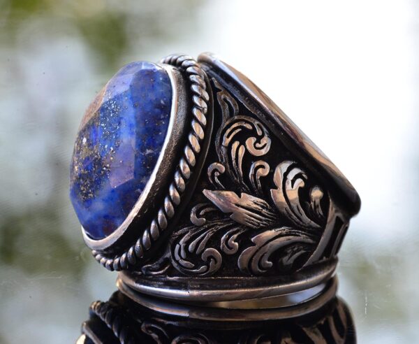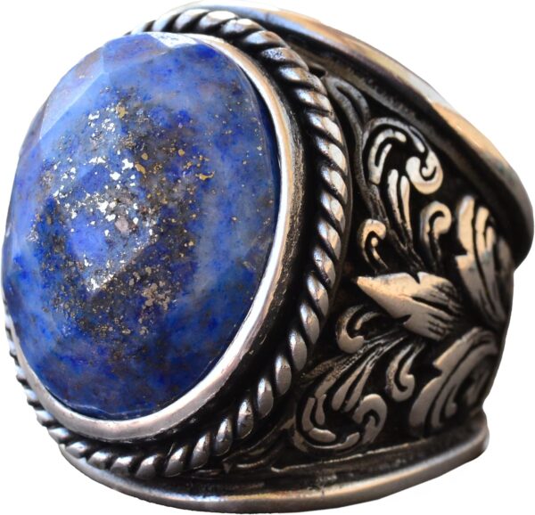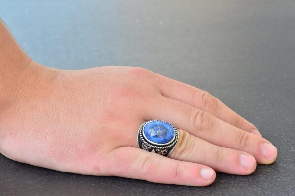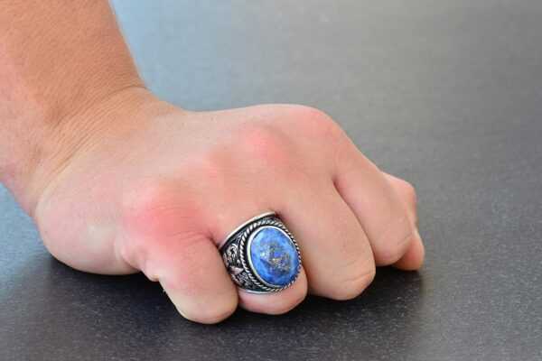 Erkekler için 925 Ayar Gümüş Yüzükler – Doğal Taş Seçimi (Sodalit)
