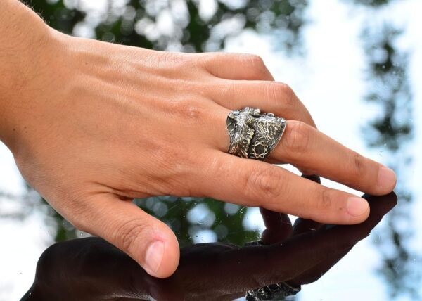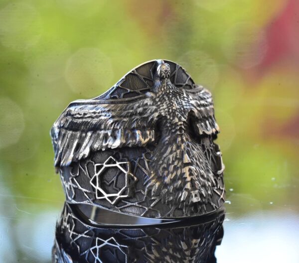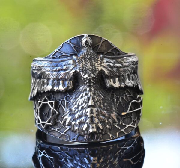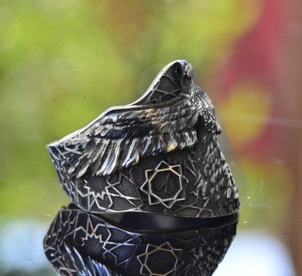 Erkekler için Ayarlanabilir Kanatlı Kartal Okçuluk Yüzüğü – 925 Ayar Gümüş