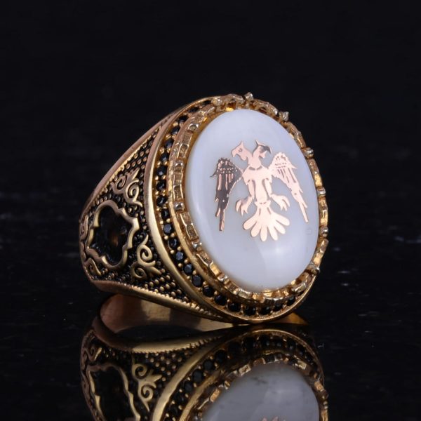 Erkekler için Çift Başlı Kartal Yüzüğü – 925 Ayar Gümüş Altın Kaplama Erkek Yüzüğü (Beyaz)