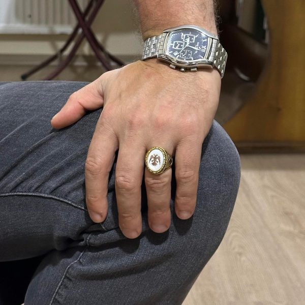 Bu yüzük sadece bir takı parçası değil; güç ve görkemi simgelemektedir. Zamansız tasarımı ile iki başlı kartalın zarafetini ve kültürel önemini kucaklayın.