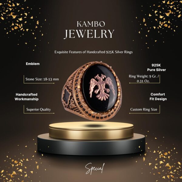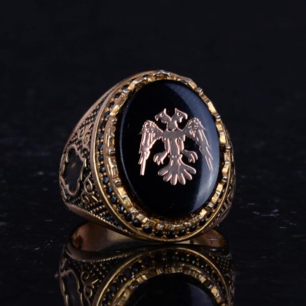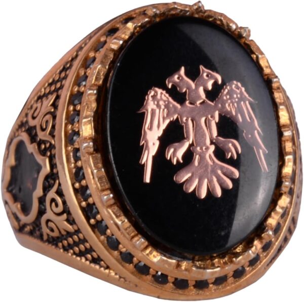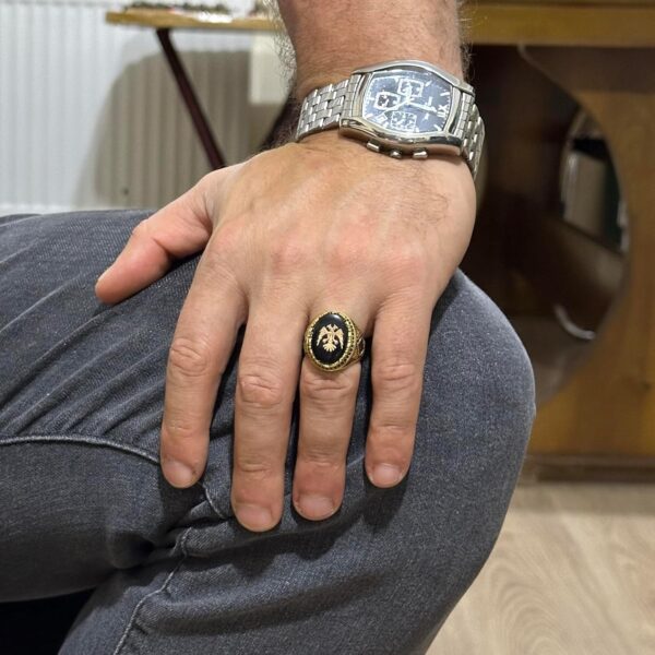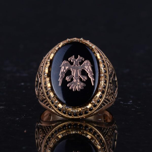 Bu yüzük sadece bir takı parçası değil; güç ve ihtişamın bir sembolüdür. Bu zamansız tasarım ile iki başlı kartalın zarafetini ve kültürel önemini kucaklayın.