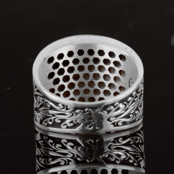 Her yüzük, karmaşık tasarım unsurlarını ve üstün işçiliği sergileyerek titizlikle el yapımı olarak üretilmektedir. Bu yüzüğün zarif tarzı, herhangi bir takı koleksiyonuna dikkat çekici bir katkı sağlar.