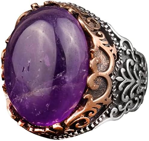 Erkekler için Doğal Ametist Taşlı Yüzük, 925 Ayar Gümüş El Yapımı Vintage Tarzı, Şifa Kristali Takı
