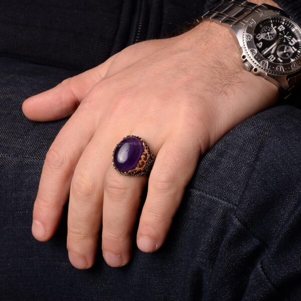 Erkekler için Doğal Ametist Taş Yüzük