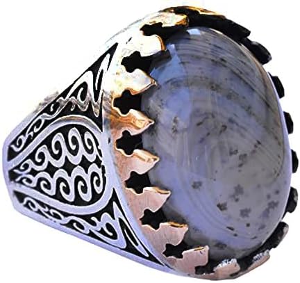 Erkekler için Düz 925 Ayar Gümüş Yüzük Gerçek Doğal Bej Ağaç Taşı Değerli Taş Yüzük Vintage Tasarım Değerli Taş Takı Erkek Gümüş Yüzük Başak Burcu Takı Hediye Olarak Ağaç Taşı Sembolik Takı