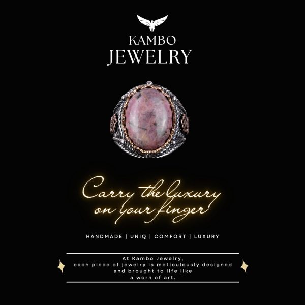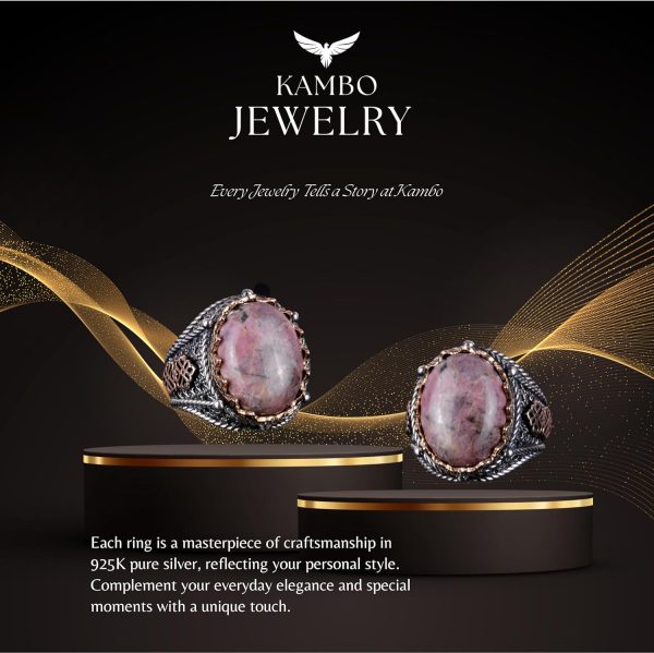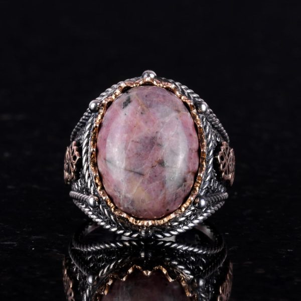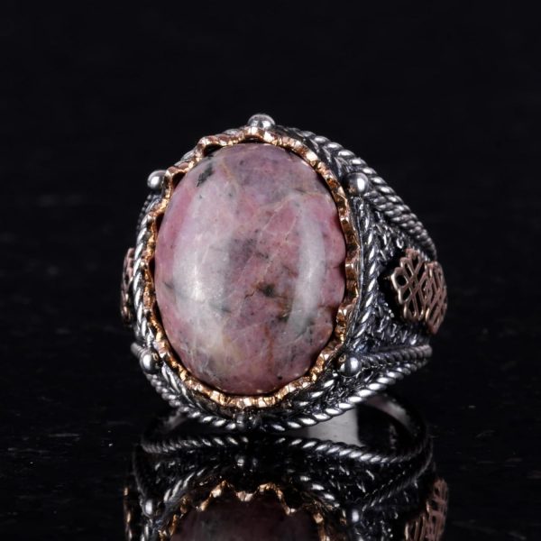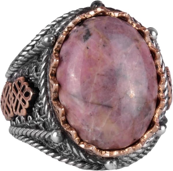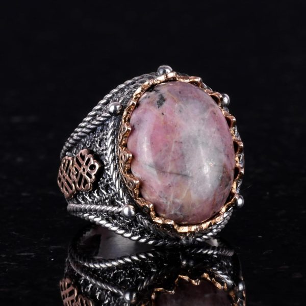 Erkekler için El Yapımı Gerçek Doğal Rhodonit Taş Yüzük, 925 Ayar Saf Gümüş Yüzük, Erkek Yüzüğü
