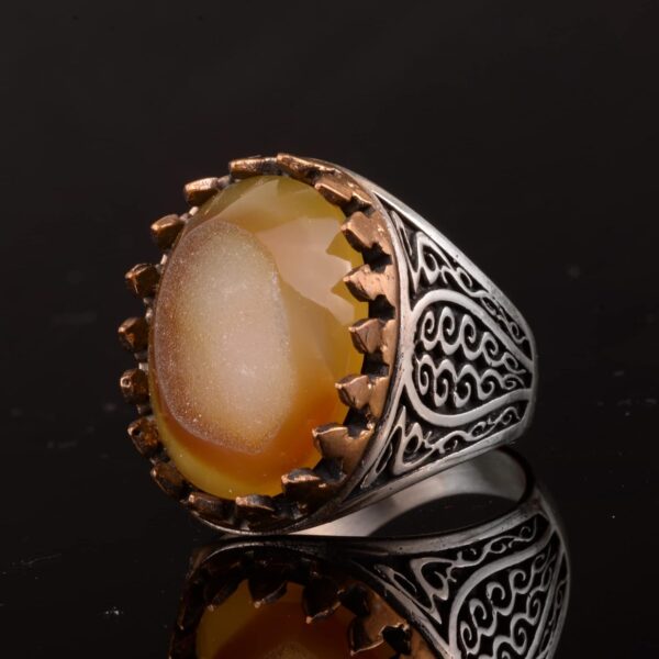 Erkekler için Gerçek Druzy Kuvars Doğal Taş ile Tasarlanmış Gümüş Yüzük