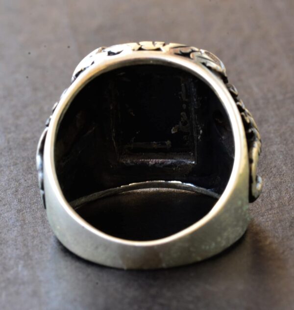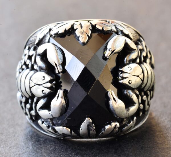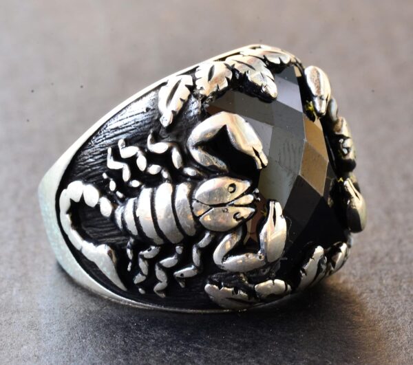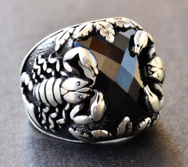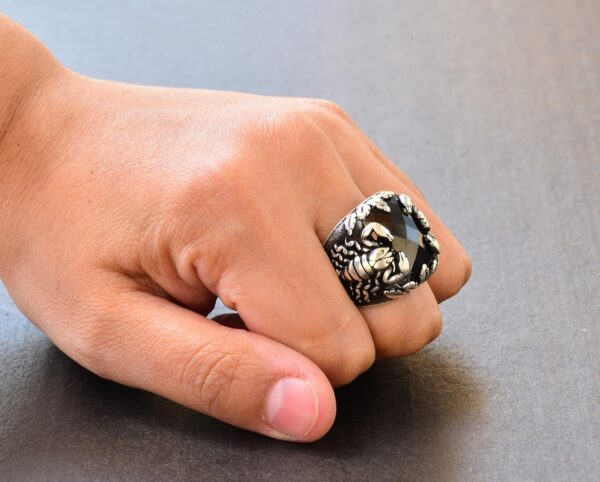 Erkekler için Gümüş Akrep Yüzüğü – Doğal Obsidan Taşı
