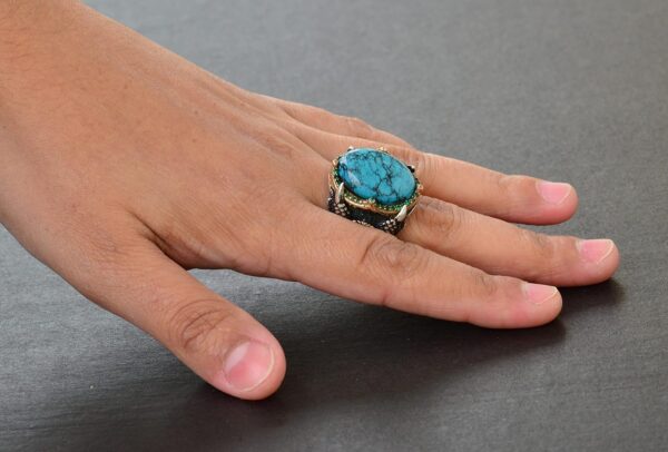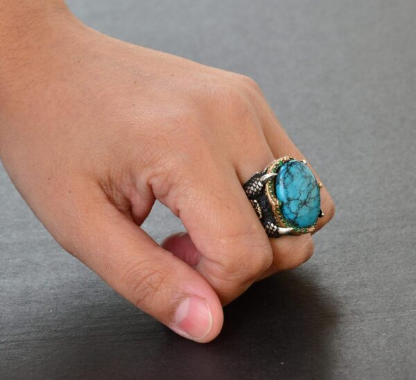 Erkekler için Gümüş Şahin Pençesi Yüzük – Doğal Turkuaz Taşı