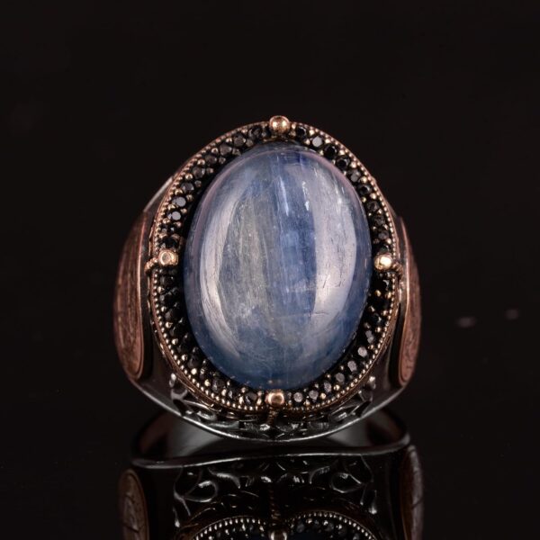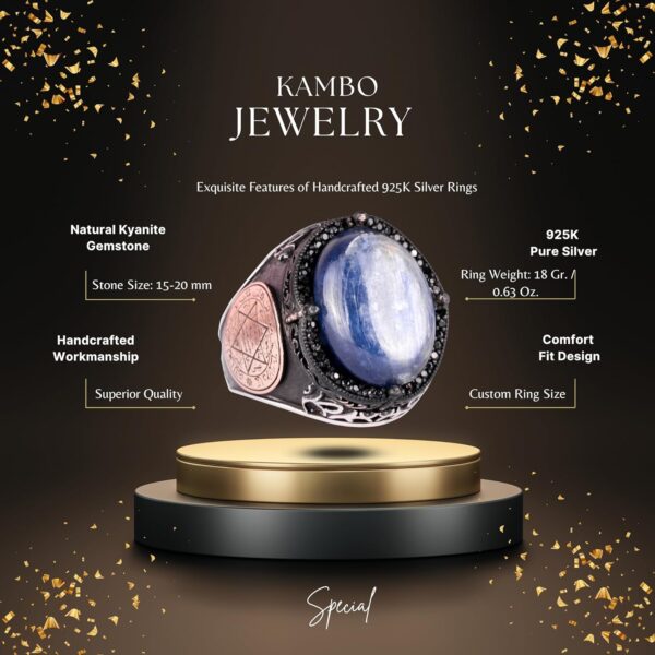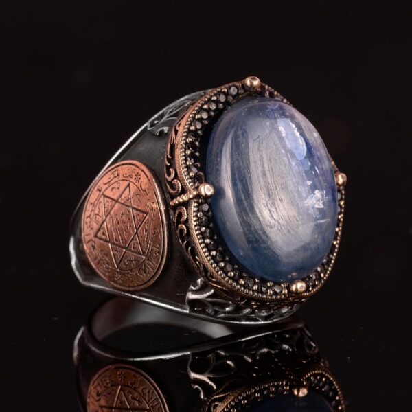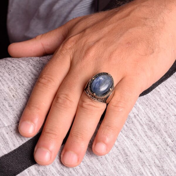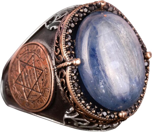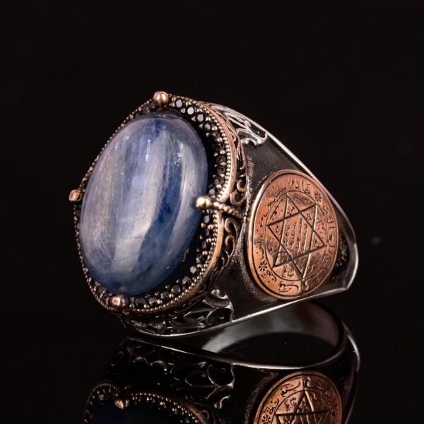 Erkekler için Gümüş Yüzük, Doğal Kyanit Taşlı Yüzük – 925 Ayar Katı Gümüş Erkek Yüzüğü, Davud’un Yıldızı Yüzüğü
