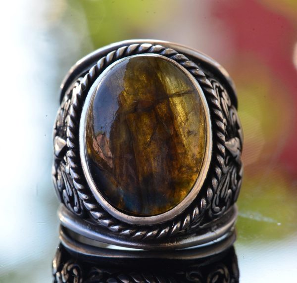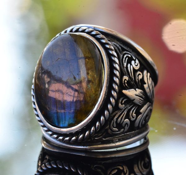 Erkekler için İnce Taş Koleksiyonu: 925 Ayar Gümüş Yüzükler – Doğal Taş Seçimi (Labradorit)
