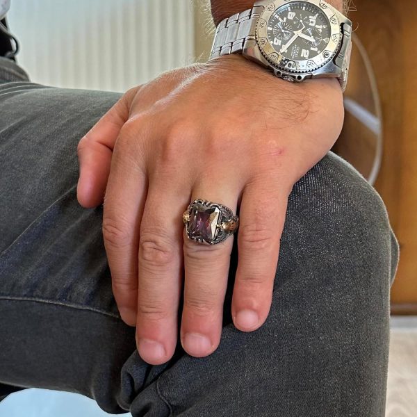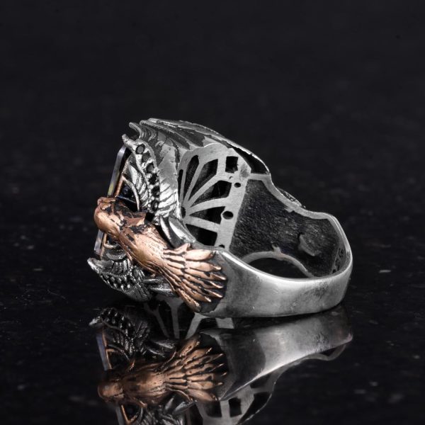Erkekler için Kartal Sembolü Tasarlanmış Taş Yüzük, El Yapımı 925 Ayar Gümüş Yüzük – Koruma Sembolü (Tasarım mistik topaz)