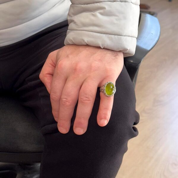 Erkekler için Lüks 925 Ayar Gümüş Sentetik Taş Yüzükler – Çeşitli Koleksiyon (Peridot Sentetik Taş)
