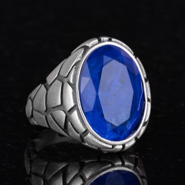 Erkekler için Lüks 925 Ayar Gümüş Yapay Taş Yüzükler – Farklı ve Çeşitli Koleksiyon (Lacivert Paraiba Yapay Taşı)
