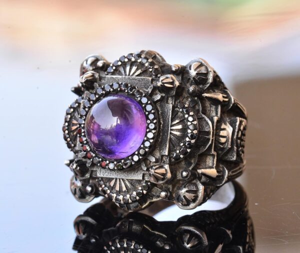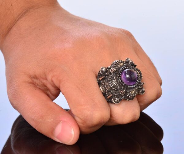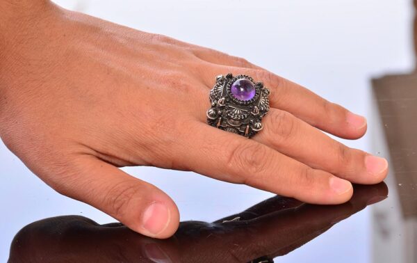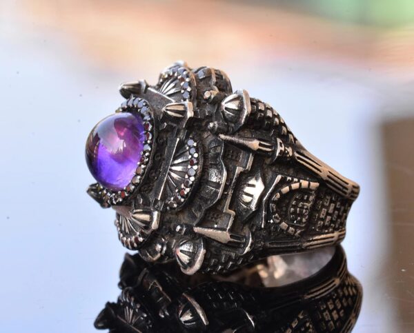 Erkekler için Lüks 925 Ayar Gümüş Yüzük – Doğal Ametist Taşı ile Şahane ve Görkemli Tasarım