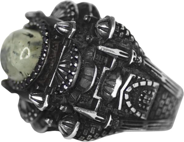 Erkekler için Lüks 925 Ayar Gümüş Yüzük, Doğal Prehnit Jade Taşı – Şık ve Görkemli Tasarım