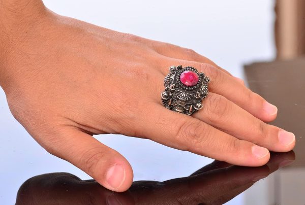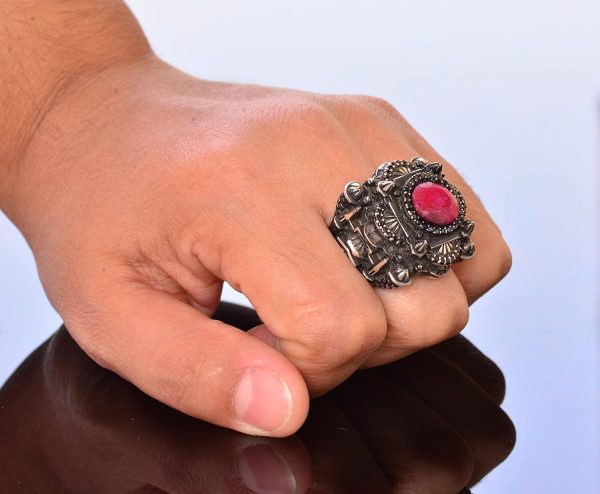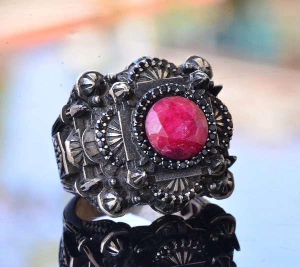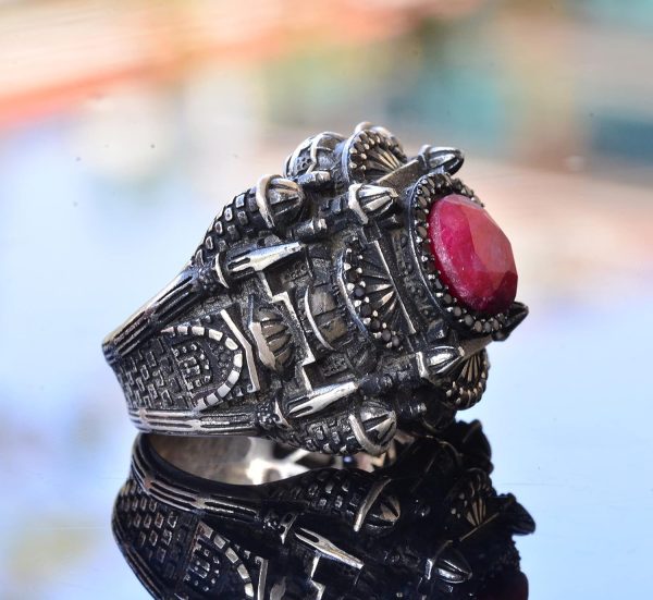 Erkekler için Lüks 925 Ayar Gümüş Yüzük – Yakut Taşlı – Zarif ve Görkemli Tasarım