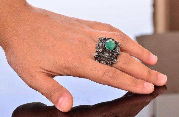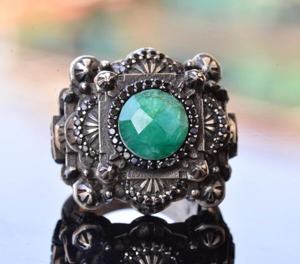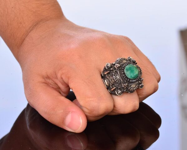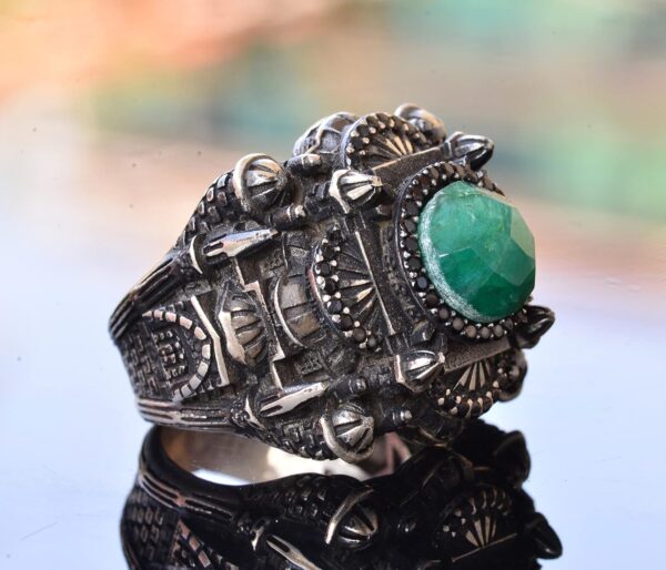 Erkekler için Lüks 925 Ayar Gümüş Yüzük – Zümrüt Taşlı – Zarif ve Görkemli Tasarım
