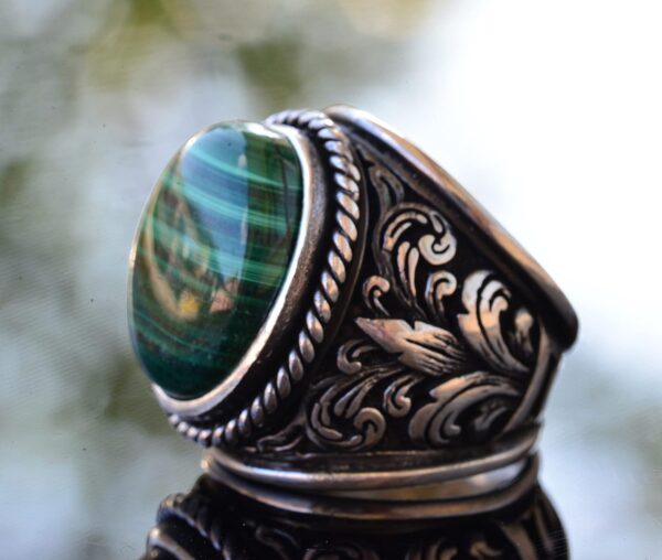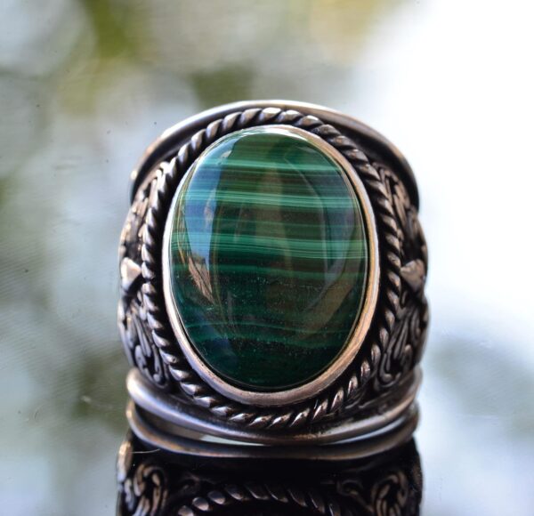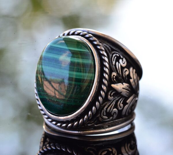Erkekler için Şık Doğal Taş Koleksiyonu: 925 Ayar Gümüş Yüzükler – Malakit Seçeneği