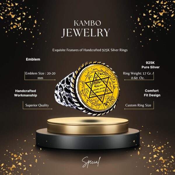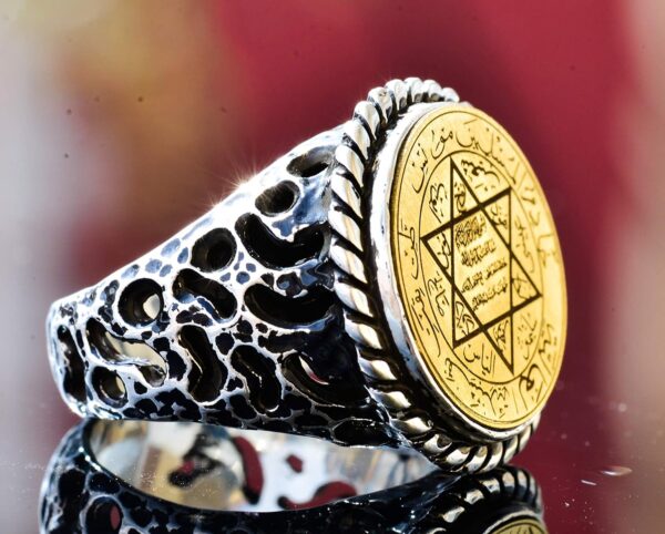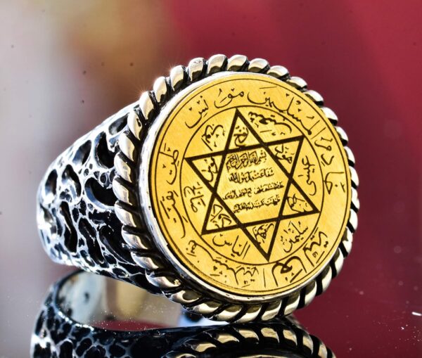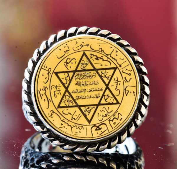 İdeal hediye mi arıyorsunuz? Arapça yazılarla süslenmiş bu Davut Yıldızı tılsım yüzüğü, dini günler, doğum günleri, yıldönümleri veya herhangi bir özel etkinlik için mükemmel bir seçimdir. Büyüleyici tasarımı ve yüksek kaliteli işçiliği, herhangi bir alıcıyı etkileyecek ve memnun edecektir.