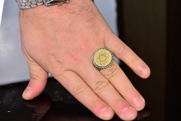 Erkekler için Sterlin Gümüş Yüzük – David Yıldızı Tılsımı ile Yazılı İslami Sözler