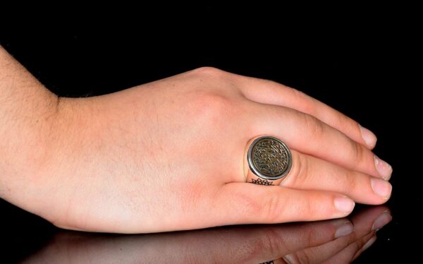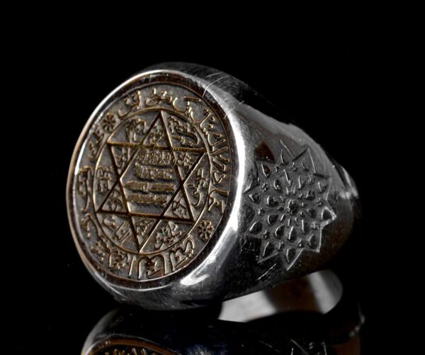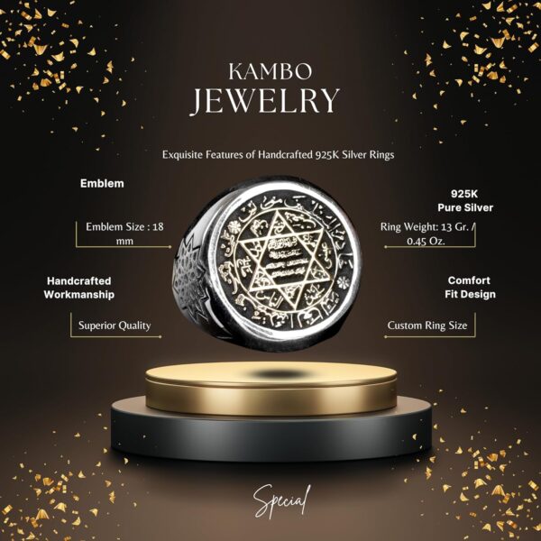 Yüzük, detaylı David Yıldızı tasarımı ve Arap yazıları ile muhteşem bir işçilik sergilemektedir, inanç ve kültürel önem katmaktadır. Eşsiz dairesel şekli, dikkat çekici ve cesur bir görünüm ekleyerek herhangi bir mücevher koleksiyonuna öne çıkan bir parça olmasını sağlamaktadır.