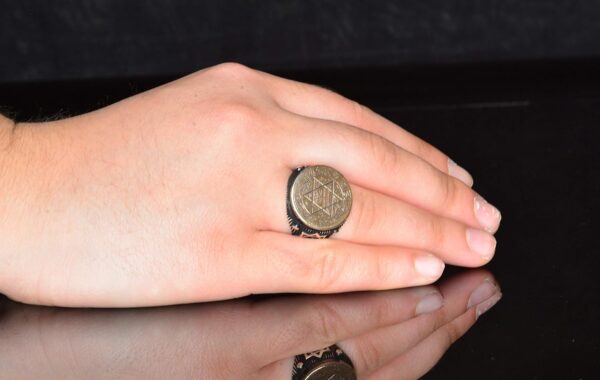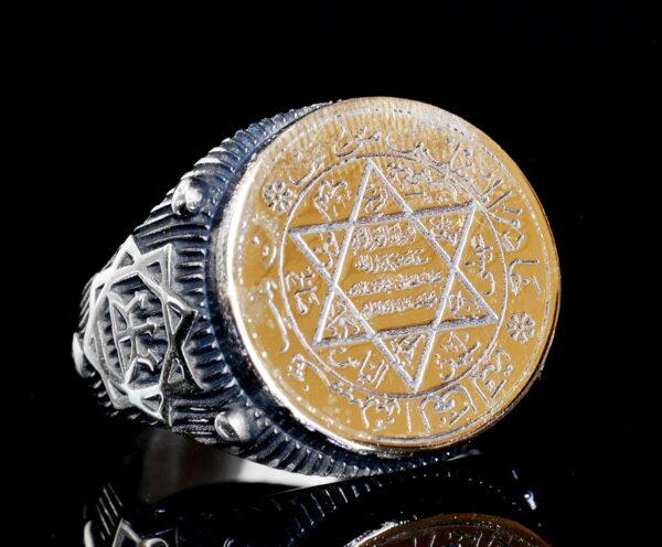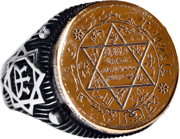 Yüzük, detaylı David Yıldızı tasarımı ve Arap yazıları ile olağanüstü bir işçilik sergilemektedir. Bu tasarım, inanç ve kültürel öneme bir dokunuş ekler. Altın detay, yüzüğün zarafetini artırarak herhangi bir takı koleksiyonuna öne çıkan bir parça olarak katılmasını sağlar.
