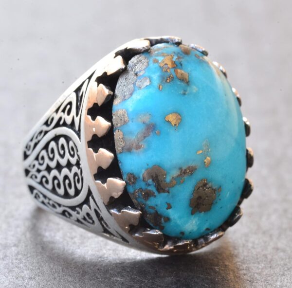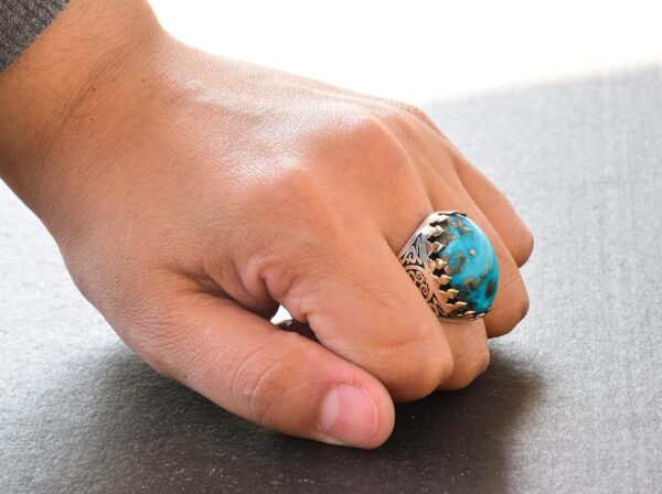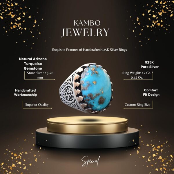 Erkekler için Sterlin Gümüş Yüzük – Doğal Arizona Turkuaz Taşı