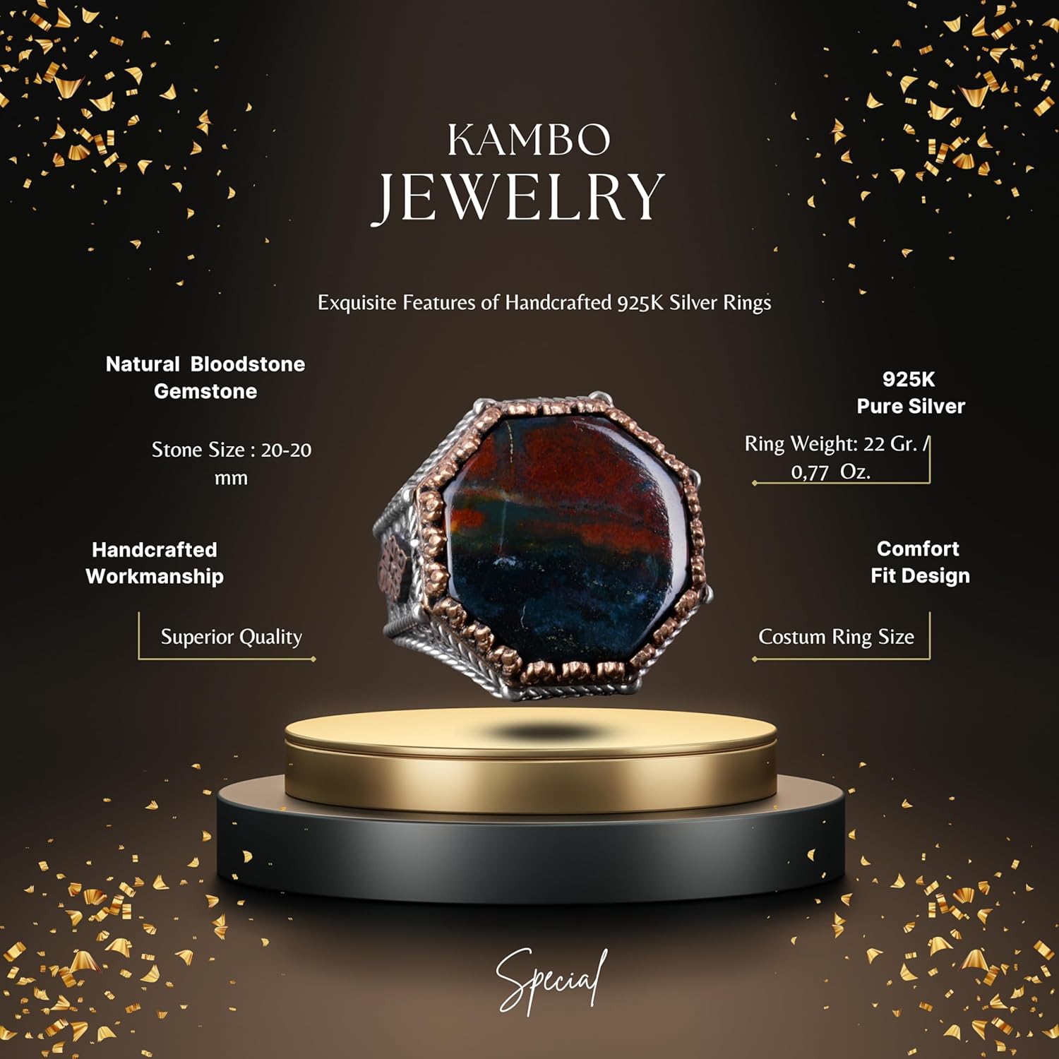 Yüzük, şık desenlerle gösterişli bir işçilik sergileyerek zarafet ve sofistike bir dokunuş katmaktadır. Günlük kullanımda veya özel günlerde giyildiğinde, çok yönlü tasarımı her kıyafeti mükemmel bir şekilde tamamlar.