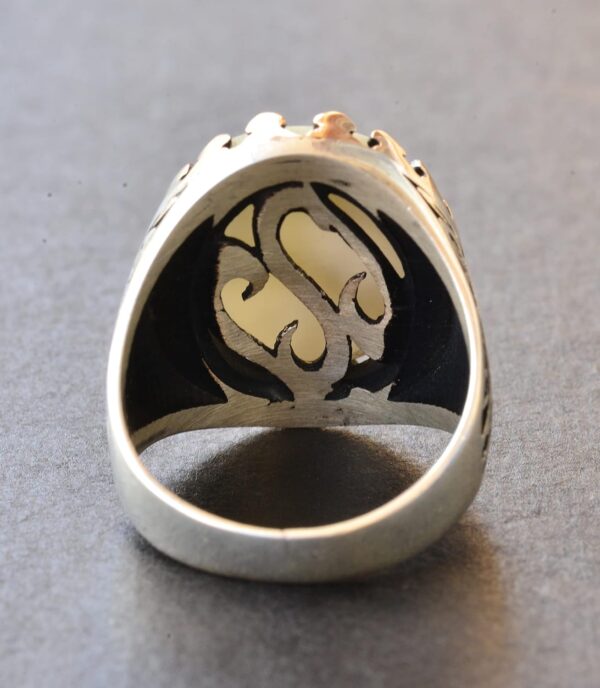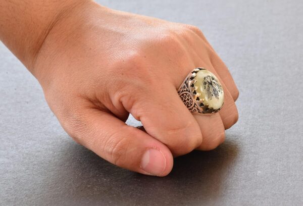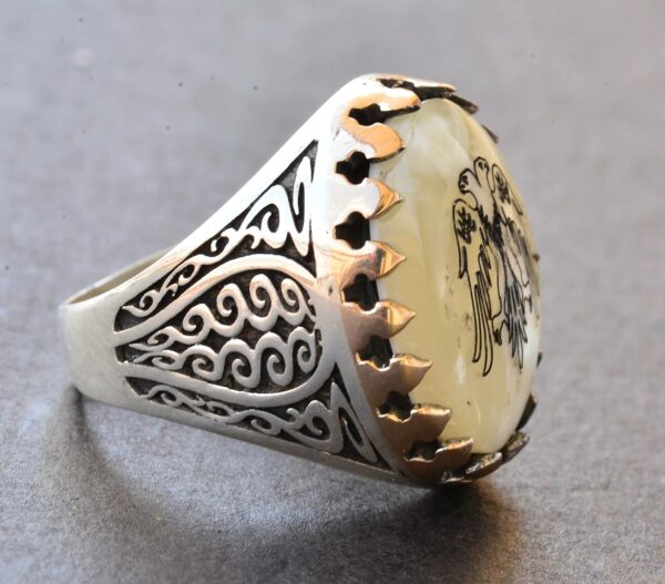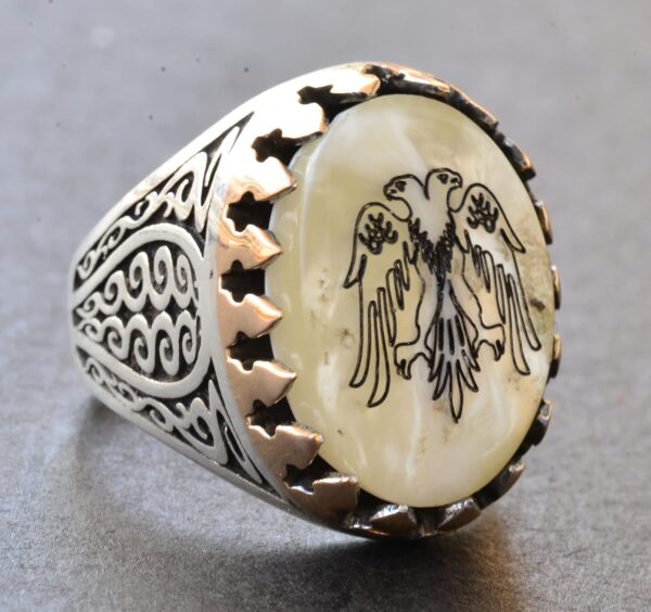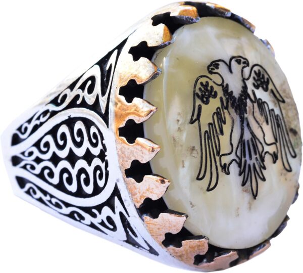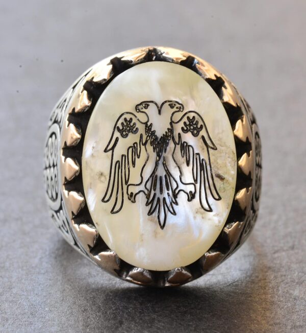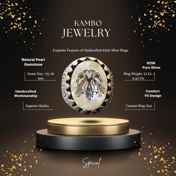 Erkekler için Sterlin Gümüş Yüzük – Doğal İnci Taşı ve Çift Başlı Kartal Tasarımı