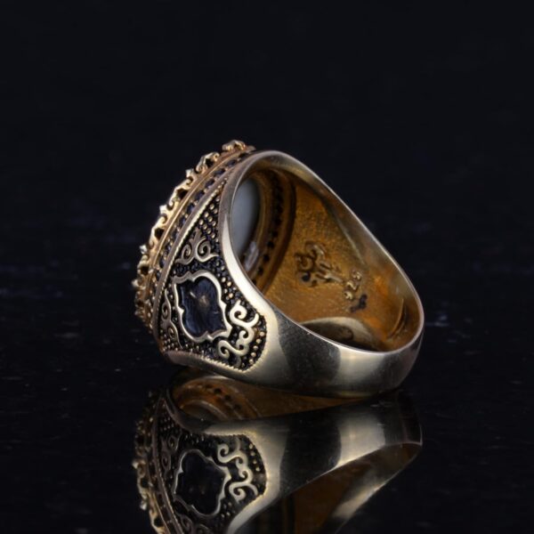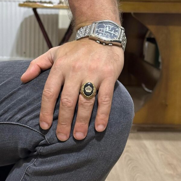 Bu yüzük sadece bir takı parçası değil; kraliyet ve otoritenin sembolüdür. Bu zamansız tasarım ile kral tacının zarafetini ve ihtişamını kucaklayın.