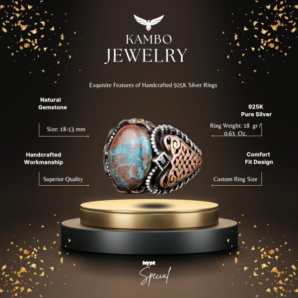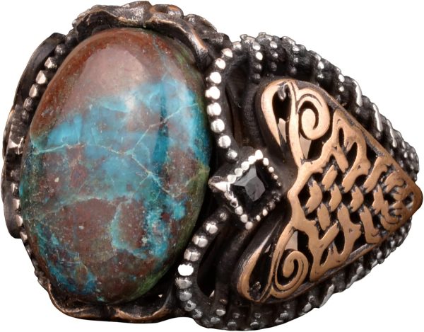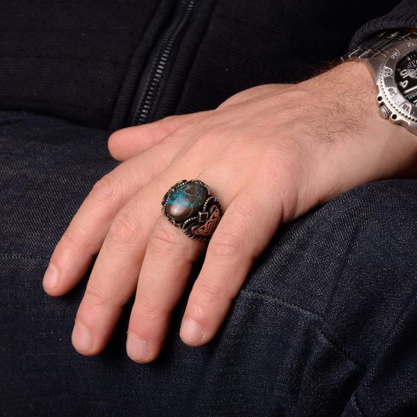 Erkekler için Yeşil Turkuaz Taş Yüzük, 925 Ayar Gümüş ile Vintage Orta Doğu Tasarımı (Model-6)
