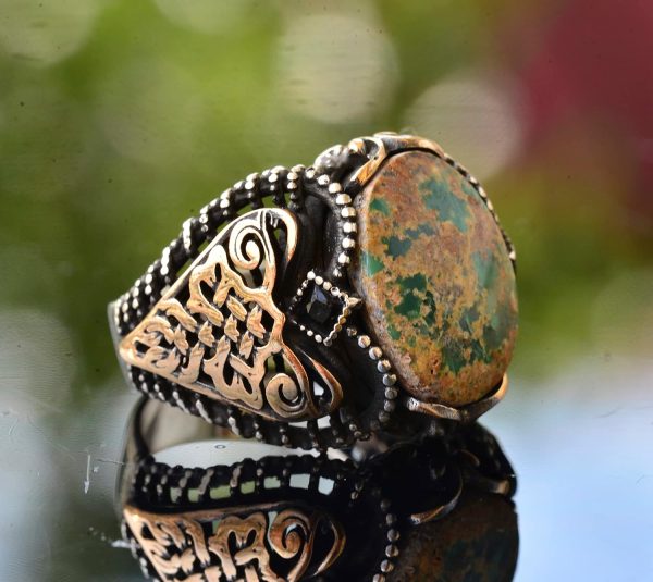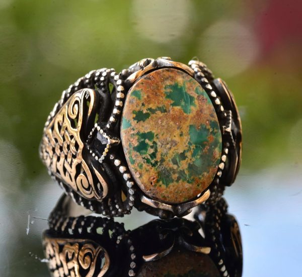 Erkekler için Yeşil Turkuaz Taş Yüzük, 925 Ayar Gümüş Vintage Ortadoğu Tasarımı (Stil-4)
