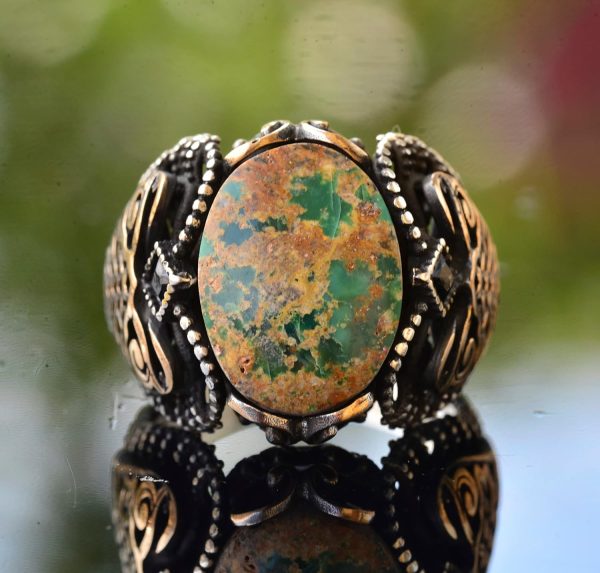 Erkekler için Yeşil Turkuaz Taş Yüzük