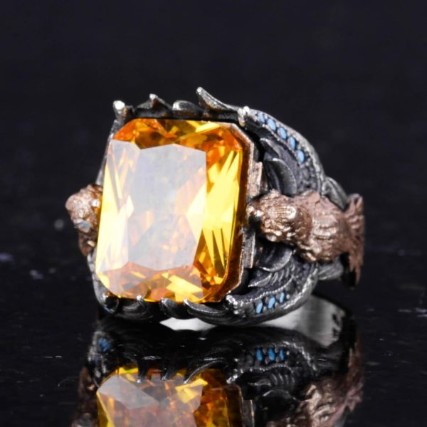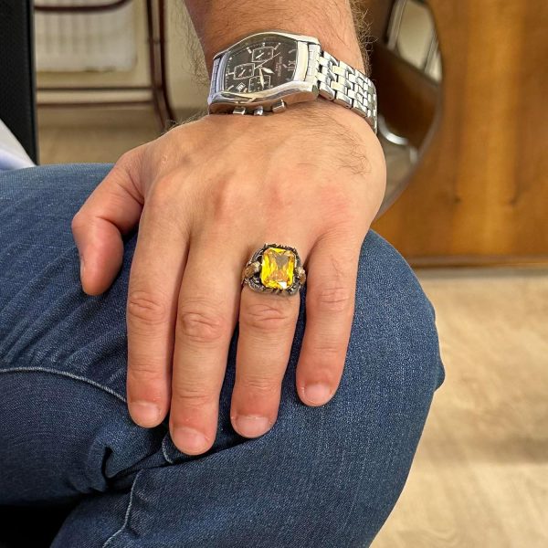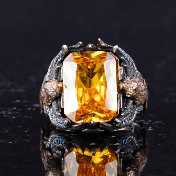 Oluşturulmuş Sitirin taşı ile tasarlanmış Erkekler için Yılan Yüzüğümüz, uzun ömürlü kalite ve zarafeti sağlamak için titizlikle el yapımı 925 ayar gümüşten üretilmiştir. Her yüzük, sıcaklık ve pozitiflik hissini yansıtan, göz alıcı sarı rengi ve etkileyici parlaklığı ile tanınan oluşturulmuş bir Sitirin taşı sergilemektedir.