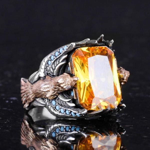 Erkekler için Yılan Yüzük, Doğal Olmayan Sitrin Taşı ile, El Yapımı 925 Ayar Gümüş İfadeli Yüzük