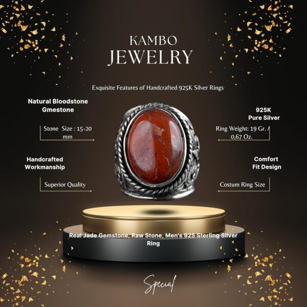 Erkekler için 925 Ayar Gümüş Yüzük – Eşsiz Doğal Kan Taşı Değeri