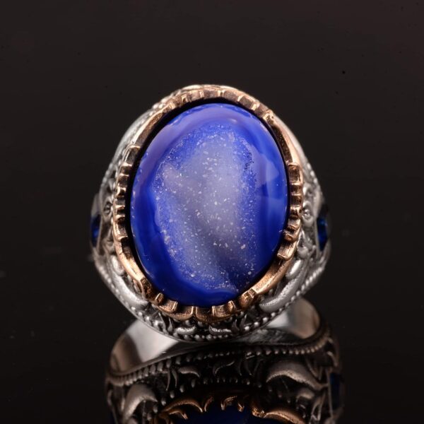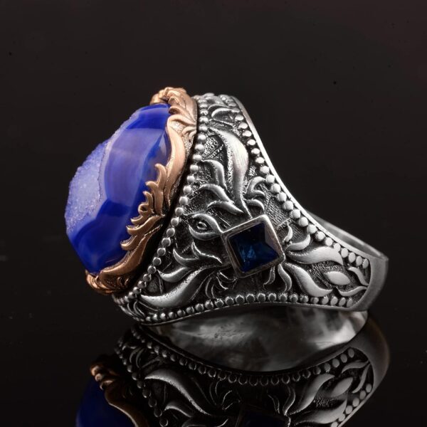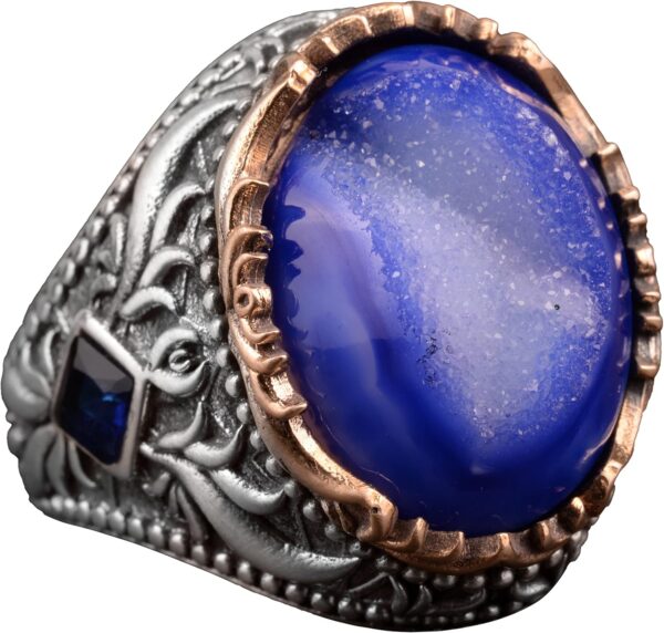 Eski Tarz Erkekler için 925 Ayar Gümüş Yüzük Doğal Druzy Kuvars Taşlı