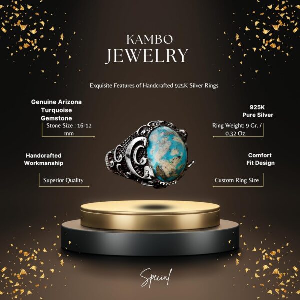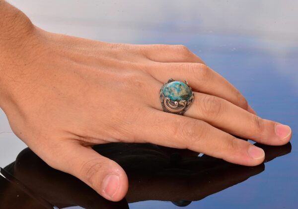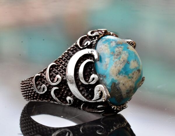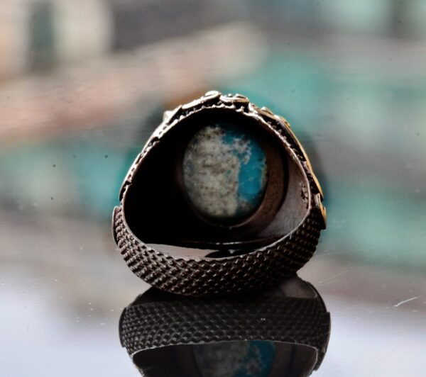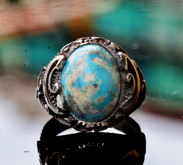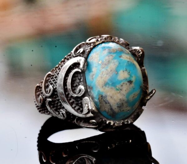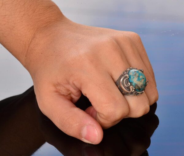 Gerçek Arizona Turkuaz Taş Yüzük – 11.95 Karat Yüzük – İslami Yüzük – Gümüş Yüzük