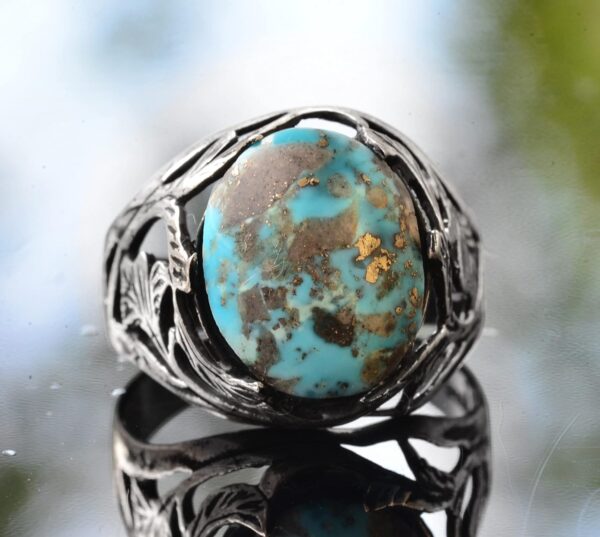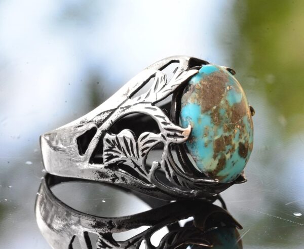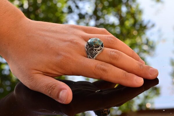 Doğal Arizona turkuaz taşı sadece güzel değil, aynı zamanda canlı rengi ve iyileştirici özellikleri ile de tanınmaktadır. Bu yüzük, günlük kullanım veya özel etkinlikler için ideal, çok yönlü ve şık bir seçenektir.