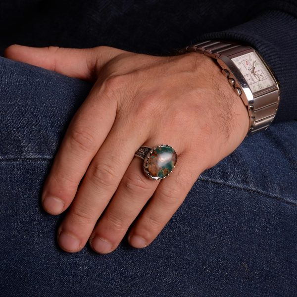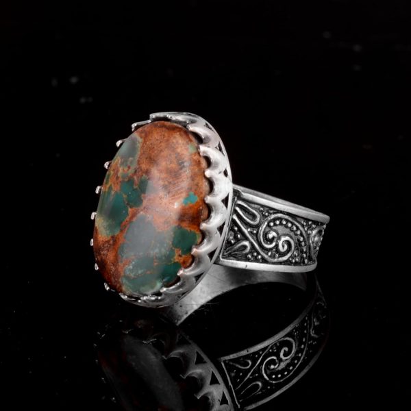 925 Ayar Gümüş erkek yüzüğü etnik, Eşsiz El Yapımı Gümüş Yüzük. Taş Boyutu: 25-18 mm Ağırlık: 14.20 gr