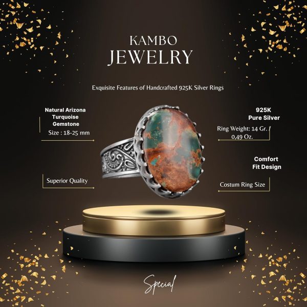 Gerçek Arizona Turkuaz Taş Yüzük, 925 Ayar Katı Gümüş Yüzük