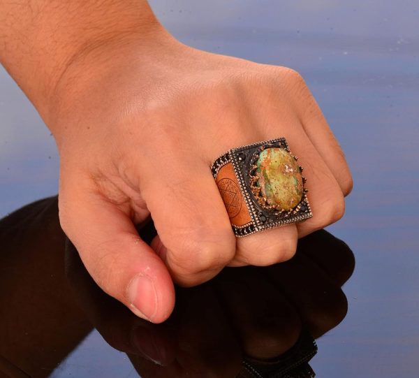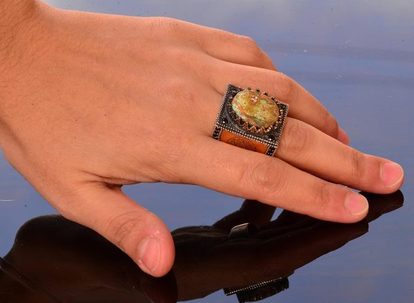 925 Ayar Gümüş erkek yüzük etnik tasarım, Eşsiz El Yapımı Gümüş Yüzük. Taş Boyutu: 20-15 mm Ağırlık: 21.42 gr